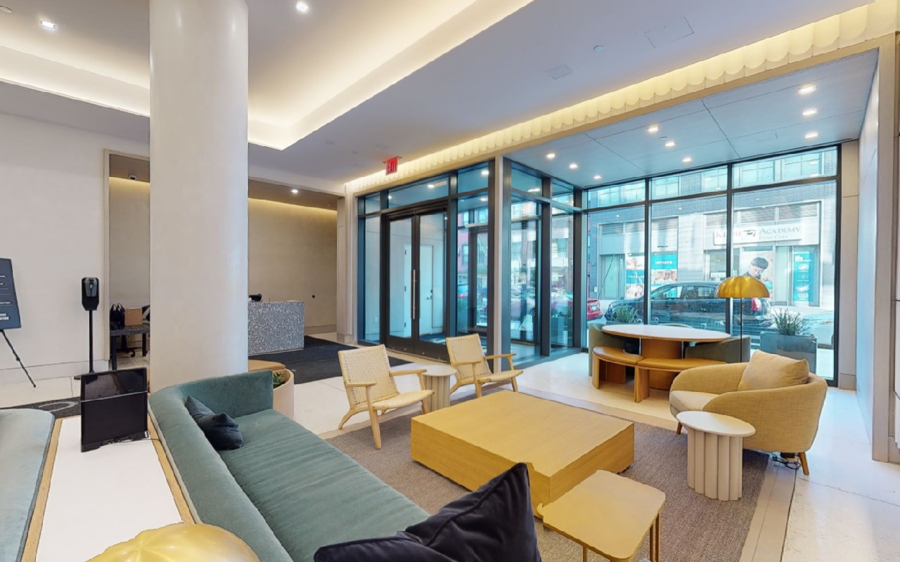 Upon entering the Dime, one is instantly swept into a contemporary oasis with seemingly every imaginable amenity. The fifth floor boasts an indoor/outdoor state-of-the-art fitness center, half basketball court, and an outdoor gaming terrace. Indoor and outdoor lounges will also be included on this level, offering a space for residents to unwind on comfortable sofas, get lost in a book on cozy reading chairs, or catch up on work at spacious tables. The sprawling outdoor terrace will feature comfortable seating throughout, a community garden, space for yoga, a cooking area with grills, multiple dining tables, and lush greenery set around a great lawn. Attentive doormen and concierge are available at all hours, on-site parking and bicycle storage is available for residents’ convenience.